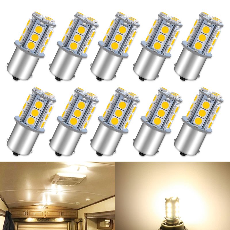 Qoope 1156 LED Bulb Warm White 1141 LED Bulbs RV Light Bulbs Interior 1073 7506 1003 BA15S Bulb for 12V Camper Travel Trailer Boat Motorhome Interior Lights, Pack of 10