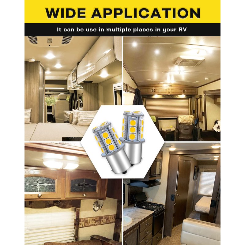 If you're looking for mood lighting, this very warm colored 1156 LED replacement bulb is a good choice, rv light bulbs can be installed in multiple places in your RV, such as: kitchen, room, bathrooms areas...ect.