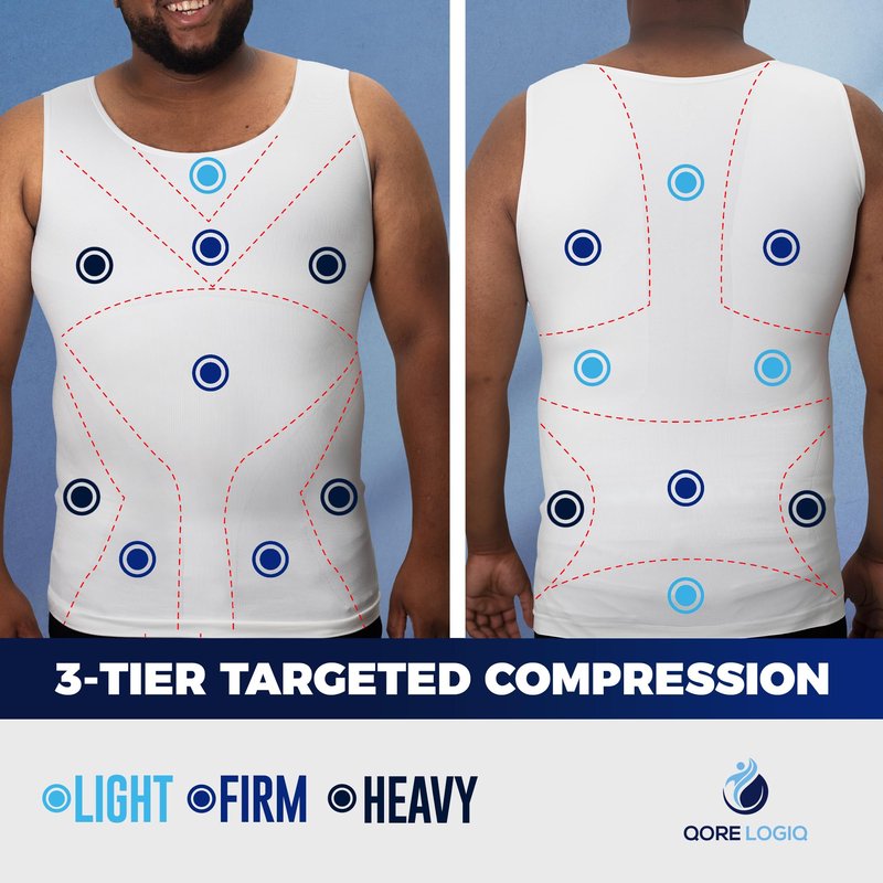 - T r a n s f o r m Y o u r S h a p e – Take back your physique with your compression tank tops for men from QORE LOGIQ! Our mens shapewear is specifically designed to minimize gynecomastia, your mens shaper vest slims your chest, tummy, and sides, being the ultimate chest binder and corset for men!