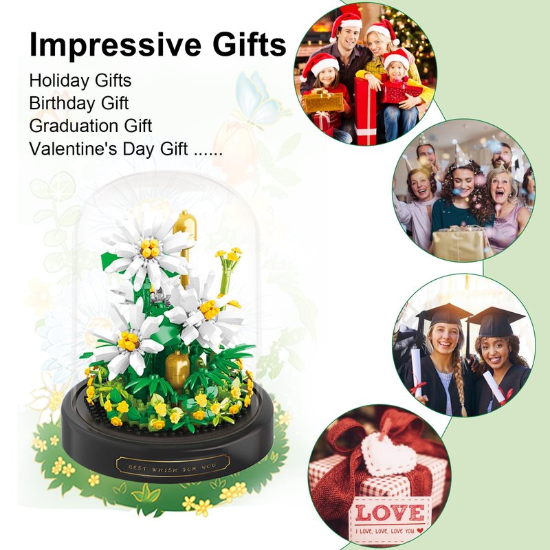 qOvOp Flower Bouquets Building Toys - 490 PCS Little Daisy Micro Building Blocks Kit with Dust Cover, Preserved Flower Home Decor Christmas New Year Birthday Great Gift for Mom/Lover/Women
