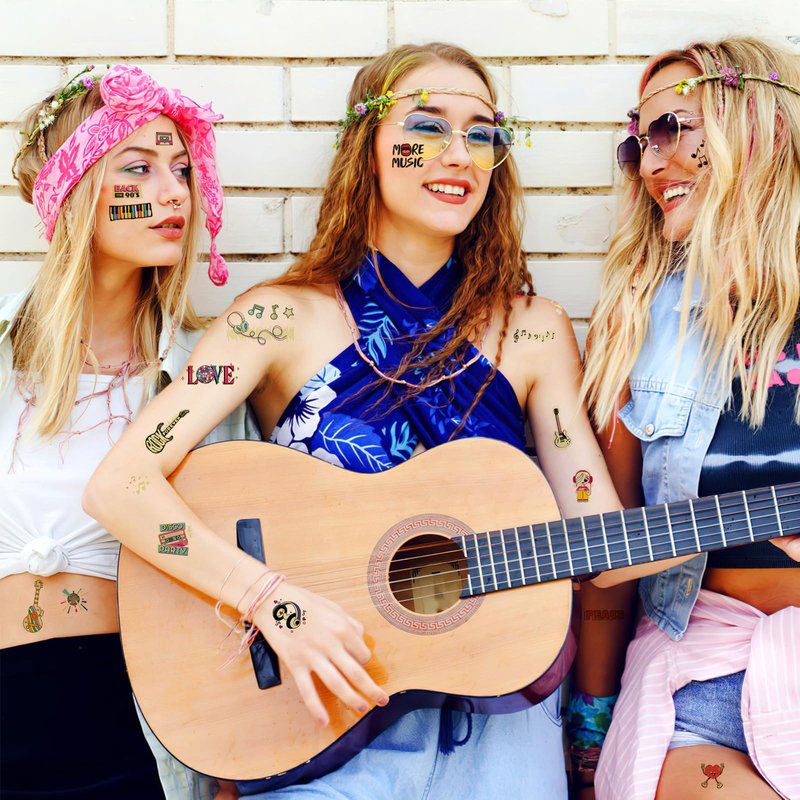 - 🎶【Add Happiness to Party】Music Festival Party Temporary Tattoos are suitable for most events, such as music carnivals,guitar rap party,90s themed birthday party,rock and roll concerts.Ideal for decor that expresses your personal style and support for your love of music!