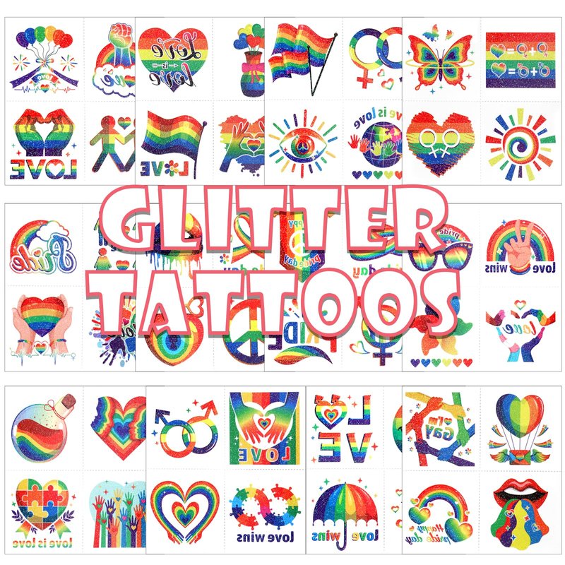 - 🌈【Reliable Quality】Our LGBT pride theme fake tattoo is made of high quality paper, the design is printed clearly, the color is bright, and it is durable.Waterproof face tattoo surface with dazzling glitter design, vivid, exquisite and true to the skin glitter tattoo will make you attractive!