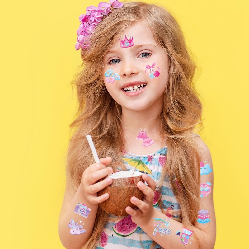 - 【Easy to use】Choose the design, put it face down on clean and dry skin, pat the tattoo with a wet paper towel, remove the tattoo paper to reveal the cutest tattoo. We have also attached the steps on the back of each tattoo sheet. Any slumber party is very fun, spa theme party, kid's birthday party/DIY decoration/gifts, gifts or rewards for the kids ladies.