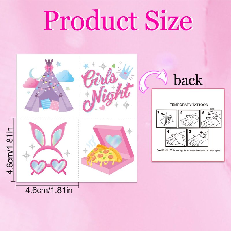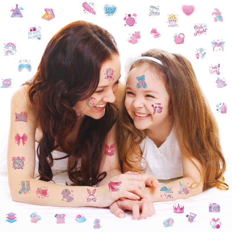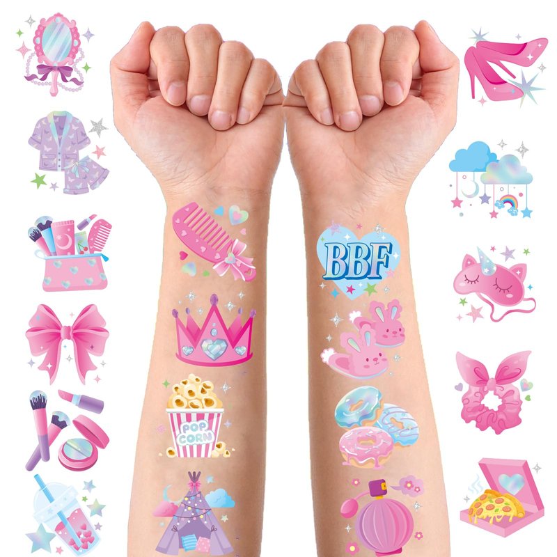 - 【Pajama Party Must Have】96Pcs slumber party temporary tattoos stickers the perfect accessory or decoration for your girls party sleepover, which includes enough tattoo designs for the whole party(48 Styles)!Add a Fun Twist to Your Pyjama Parties.