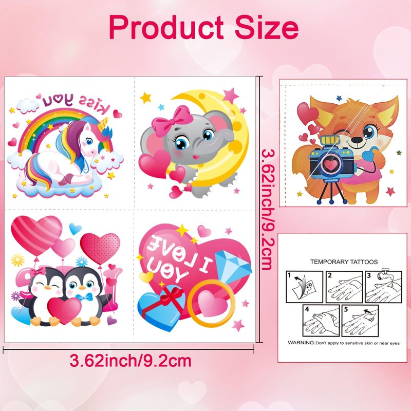- 【Versatile Usage】These Valentines Day party waterproof tattoos add an extra touch of fun and festivity to Valentine's Day celebrations. They also can be used as a special prize for class activities or as a surprise for children, and they can also be displayed on windows or other surfaces to create a lively atmosphere.