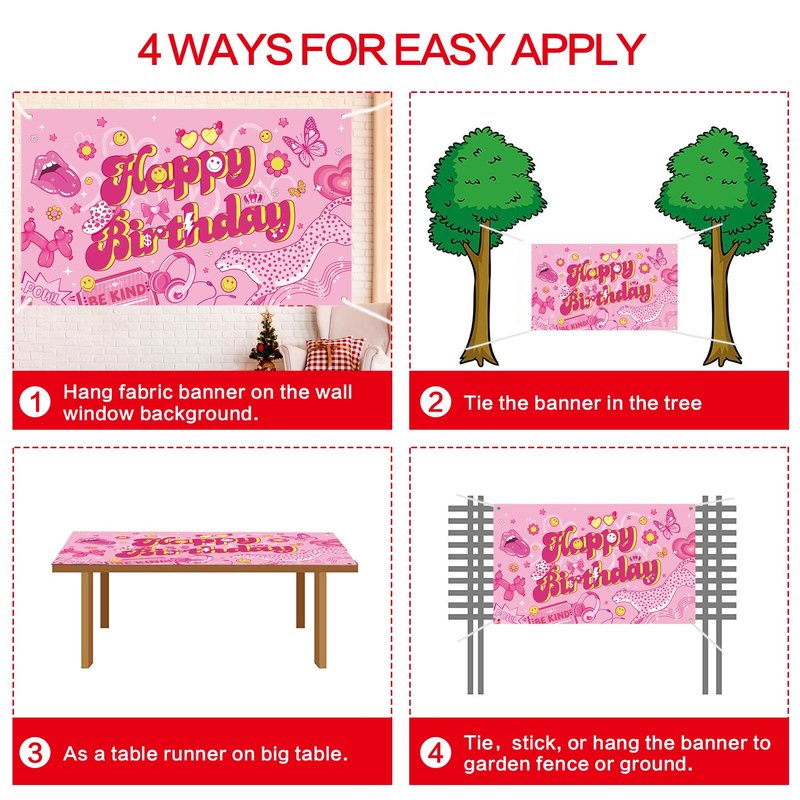 - 【Premium】Pink happy birthday banner is made of high-quality polyester fabric, clear printing, vivid pattern, not easy to fade, waterproof material is not easy to tear, light weight, easy to store and carry, washable and can be reused for a long time, high quality can be used safely for your party scene!