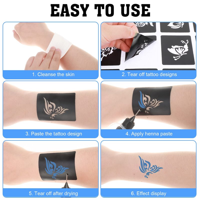 - ▶ Easy To Use: You only need to choose the tattoo pattern you like, then apply Henna Paste, wait for it to dry, and then you can see the effect of the tattoo. Tattoo stencils for real tattoos.