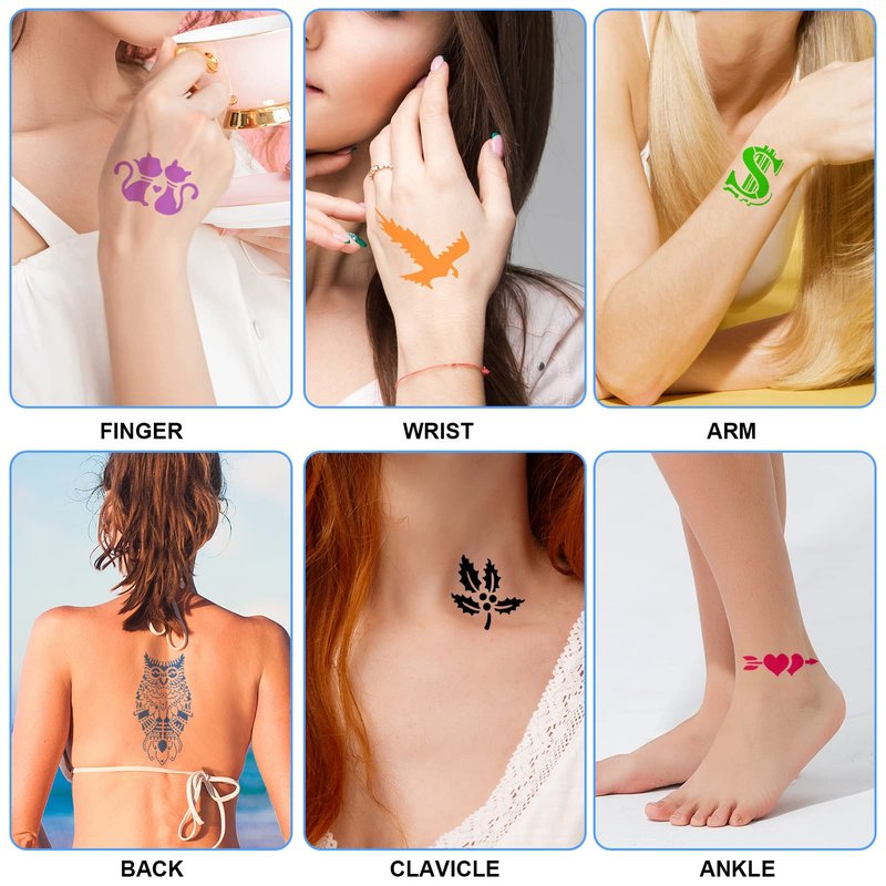 - ▶ Tattoo Parts: You can stick the tattoo template on fingers, wrists, arms, necks, faces, sleeves, backs, feet, etc. Experience the charm of tattoo easily.