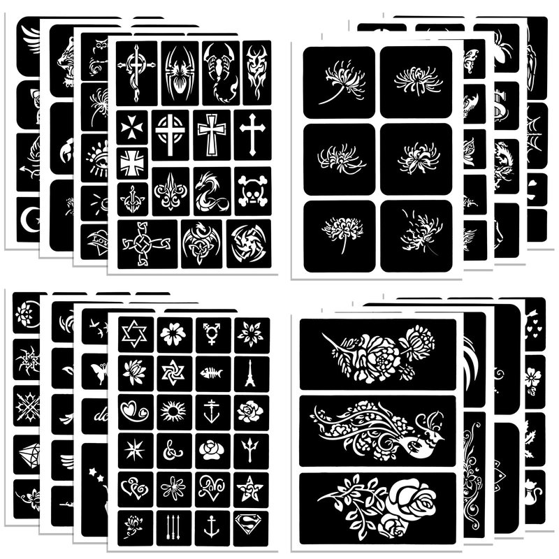 - ▶ Tattoo Stencils Size: 16 sheets henna tattoo stencils kit, including about 180 tattoo designs. Small, medium and large tattoo designs are available. Henna tattoo stencils suitable for kids, teens, men, women, tattoos beginners.