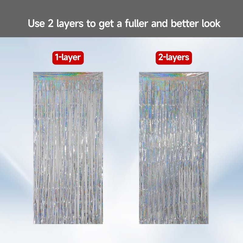 - Warm Tips for a Lively Atmosphere: The package includes 4 packs shiny silver fringe backdrop, cortinas para fiestas decoracion. Consider adding balloons, banners, and other decorations to enhance the party atmosphere. A simple and convenient arrangement can create an unexpectedly romantic atmosphere.