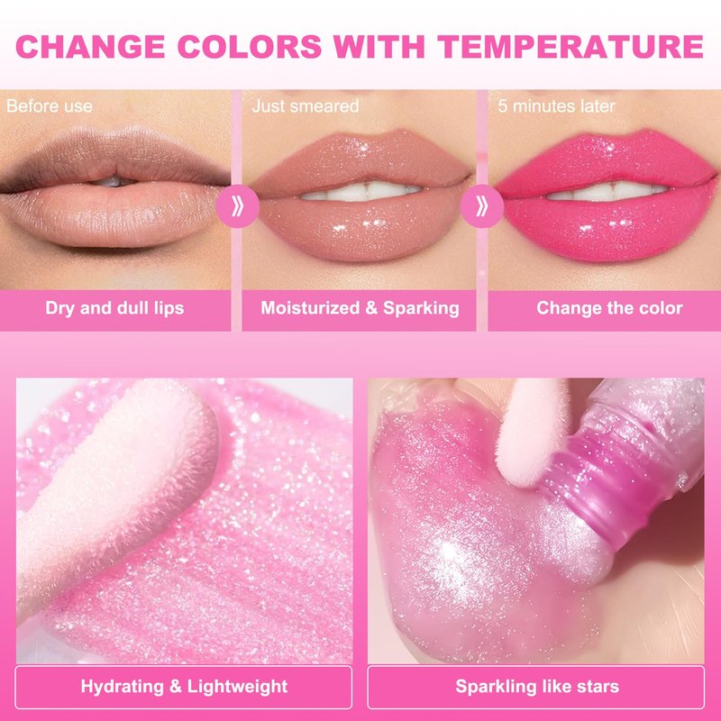 - Color Changing Lip Gloss: The magical temperature-changing effect can brighten your lips after lip care, it can change color according to the temperature of your lips.