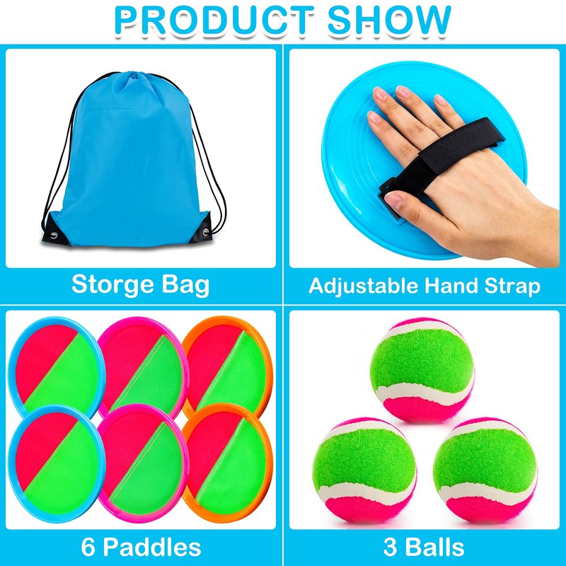 - Multiple occasions:comes with 6 paddles and 3 balls, this toss and catch ball set can be played by 2-6 people;you can playing with relatives and friends in the backyard, beach, lawn, park; this games prop for kids' parties, camping trips, outdoor activity