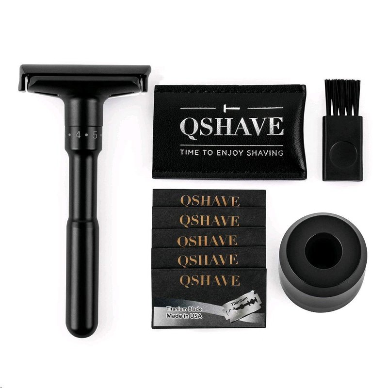 QSHAVE Adjustable Double Edge Safety Shaving Razor Deluxe Set (Razor with Stand)