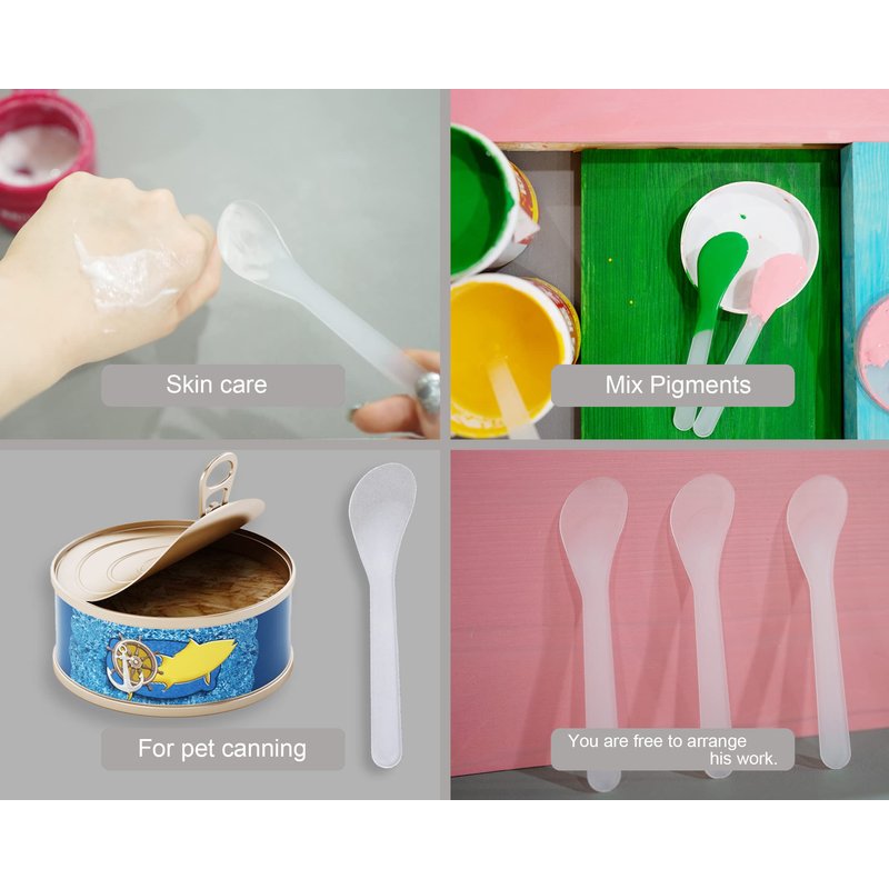- 【Great for DIY cosmetic products】Can take cosmetic out from your jars for less mess and keeping it clean from bacteria, more hygienic and safe. Appling makeup or skin care products, useful to sampling beauty products. Can take cosmetic out from your jars for less mess and keeping it clean from bacteria, more hygienic and safe. Environmental plastic spoon is comfortable to hold and very lightweight, convenient and easy to carry in your makeup bag or when you are on a trip.
