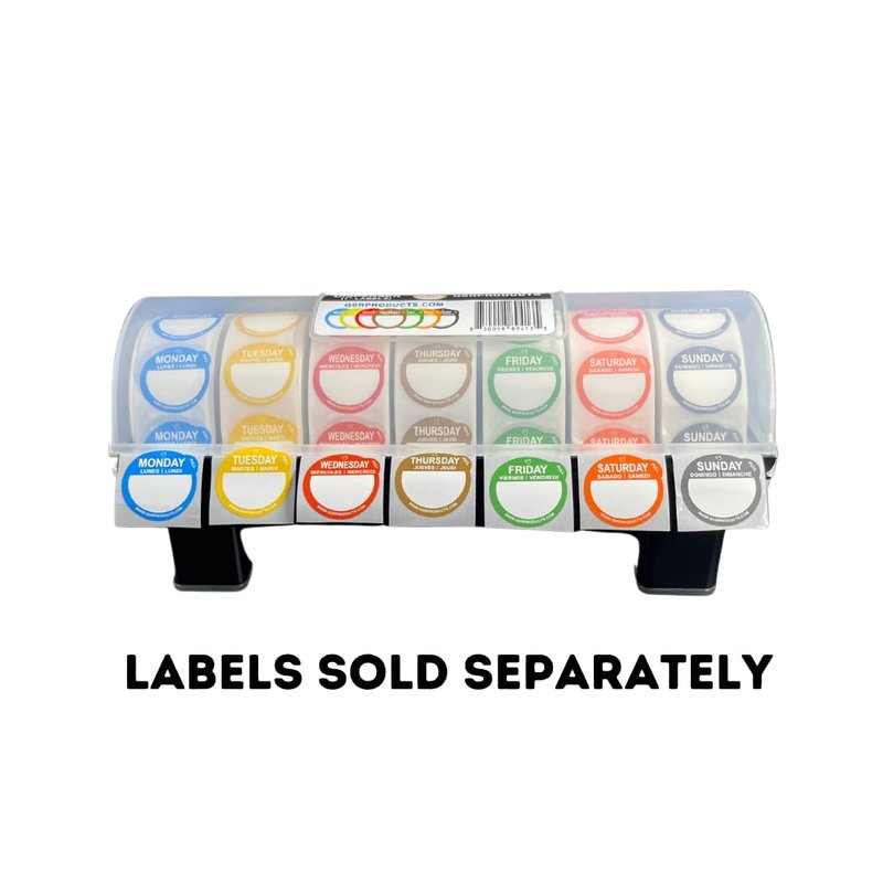 QSRProducts 7-Slot Day of The Week Covered Label Dispenser (for 3/4" or 1" Labels) - Food Sticker Holder for Inventory Management and Meal Prep, Protects Labels Inside