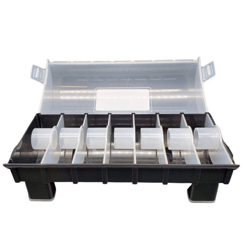Introducing the QSRProducts 7 Slot Label Dispenser - the perfect tool for organizing day of the week labels in your busy kitchen. With a sturdy design and a cover for labels, this dispenser is slip-resistant and waterproof, making it ideal for use in restaurants, QSRs, hospitals, pharmacies, and labs. Here are the key features and benefits of this product: Holds 7 rolls of 1" or 3/4" day of the week labels, making it perfect for food FIFO management. The sturdy design with a cover for labels keeps your labels organized and protected from spills, ensuring easy replacement and reducing food waste. The dispenser is slip-resistant and waterproof, making it perfect for use in busy kitchen environments. The dispenser can be wall-mounted or used as a tabletop rack, providing flexibility for your workspace. The dividers included can help organize your labels, but some labels fit better without them. Other features include compatibility with bar-style labels, ribbons, and easy-to-read dot labels. Our sticker dispenser is the ultimate labeling solution for anyone looking to improve organization and efficiency in their food service establishment, lab, pharmacy, or hospital. With its sturdy design, slip-resistant stability, and easy dispensing mechanism, it's the perfect tool to help you manage your inventory and prevent waste.