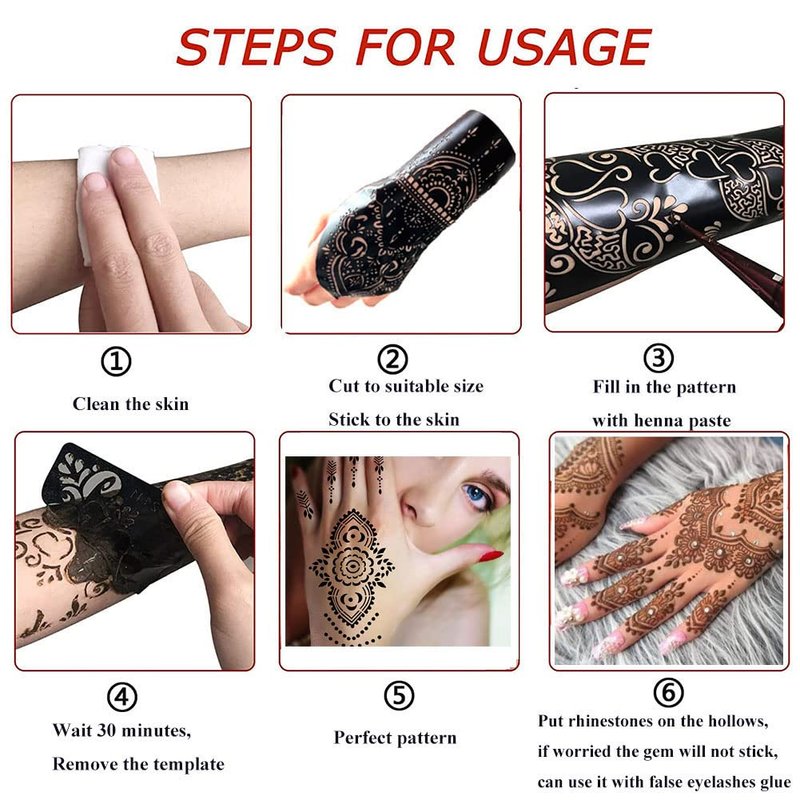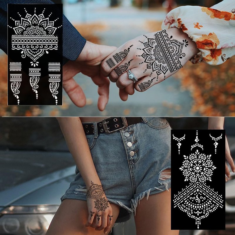 - ★Fun Experience: Our henna tattoo stencils can help you to make perfect temporary tattoo within a few minutes. Perfect for party favors, any events such as Wedding, Halloween, Christmas,Ramadan,Birthday party, Concert, the Pool, the Beach, Festivals, Henna day Party, etc.