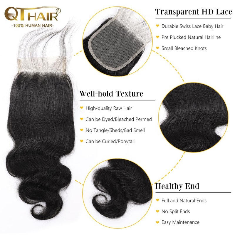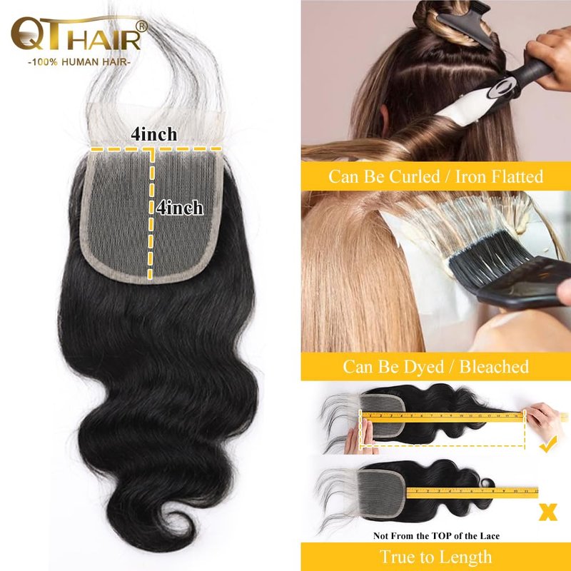 - 100% Brazilian Body Wave Human Hair that Cut off from one Young Donor Directly; Handmade Lace Closure,12A Grade Brazilian Virgin Hair Lace Closure Body Wave,No bleached Knots(Bleach Knots may easily lead to shedding, will not recommend)