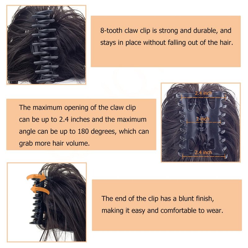 - 【Durable】Made of high-quality synthetic fiber, our claw clip-in hair extensions provide a soft, tangle-free experience, while the hair buns claw clip is easy to wear and remove, sturdy and stable enough for whole-day wear.