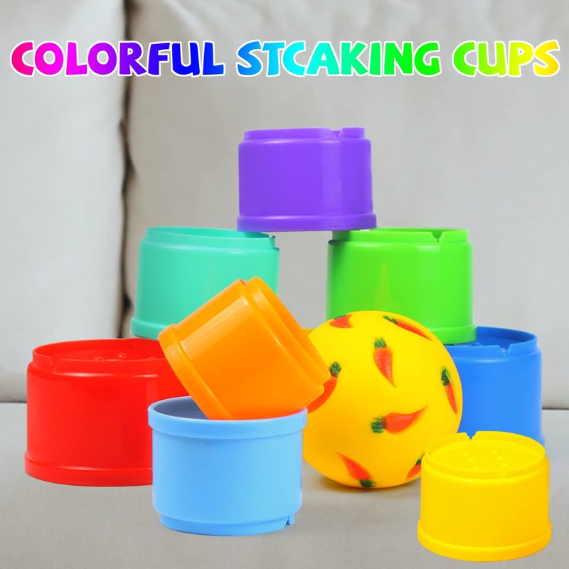 MULTI COLORED PLASTIC NESTING CUPS: The rabbit Nesting Cups and Bunny Treats Balls are a fun and interactive way to keep your bunny entertained. Made of multi-coloredstacking cups for rabbits 。STACKING CUPS FOR RABBITS: Our rabbit Nesting Cups are a fun and interactive way to keep your furry friend entertained. These stacking cups offer mental stimulation and can also be filled with our Bunny Treats Balls for an added challenge。 Interesting toys: These stacked cups prepared for rabbits are a fun way to keep your furry friends busy and entertained. The cup is made of multi-colored plastic and is easy to stack and assemble, just like a puzzle. Your rabbit will enjoy playing with these cups, and you will also enjoy watching them have fun。The size of bunny stackable toys: Snack balls with a diameter of 75 millimeters/2.95 inches, bunny stacking cups with a diameter of 56 millimeters to 79 millimeters/2.2 inches to 3.1 inches, and a total stacking height of 343 millimeters/13.5 inches, suitable for rabbit toys, guinea pig chew toys。RABBIT TOYS FOR BUNNIES: The 9-piece set includes 8 stacked cups and 1 yellow snack ball. It can be placed directly on outdoor lawns or indoor rabbit cages, making it a beautiful and practical toy for guinea pigs, rabbits, hedgehogs, and small pets.