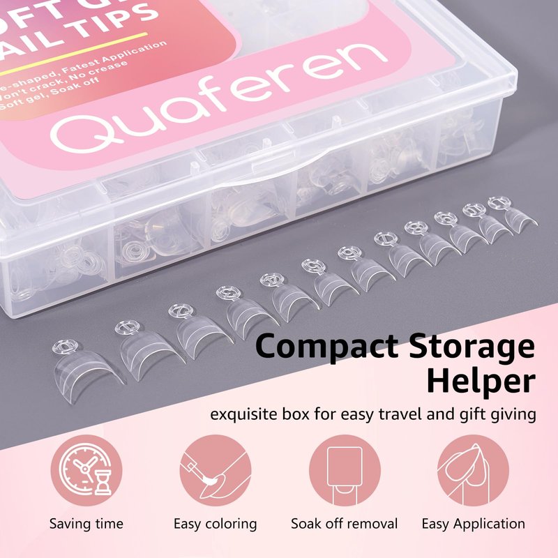 Quaferen Extra Short Nail Tips: 600Pcs Almond Nail Tips Half Cover Acrylic Nails Clear Nail Tips for Nail Extension 12 Sizes With Box