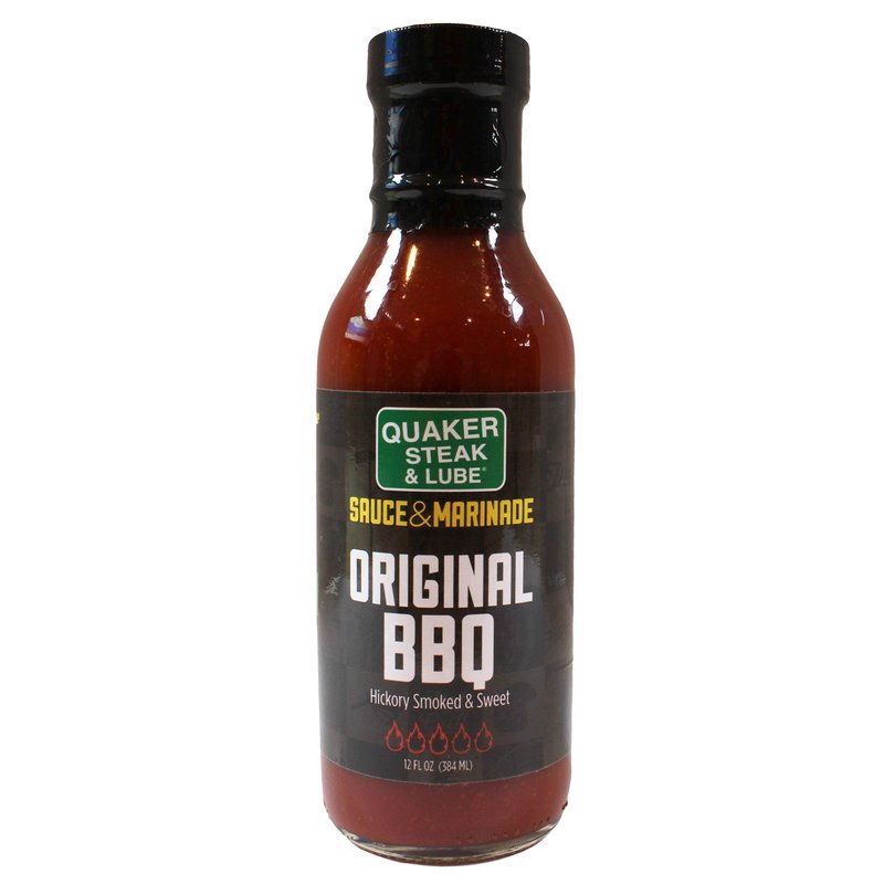 This is a 12 ounce glass bottle of the Quaker Steak & Lube Original BBQ Sauce. This sauce is a Finger Licking' Hickory Smoked Sweet Sauce. This sauce can be brush over grilled chicken, ribs, pork chops or beef. This sauce is also great for dipping chicken tenders or french fries as well. This is a Gluten Free Sauce. Can also be used as a Marinade. Buy yours today.