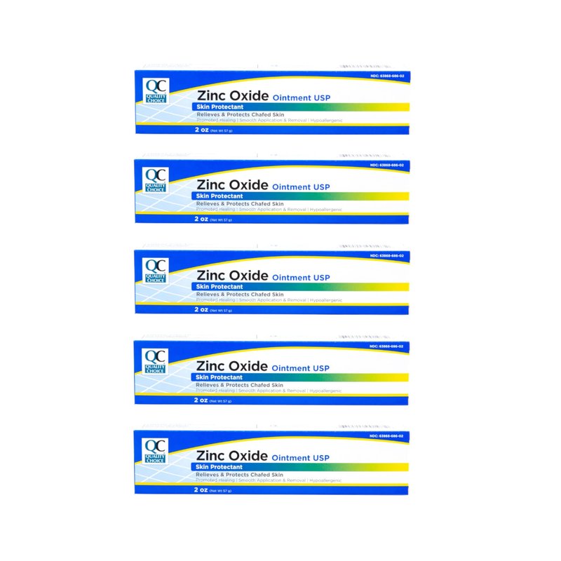 Quality Choice Zinc Oxide Ointment Skin Protectant 2oz Each (Pack of 5)