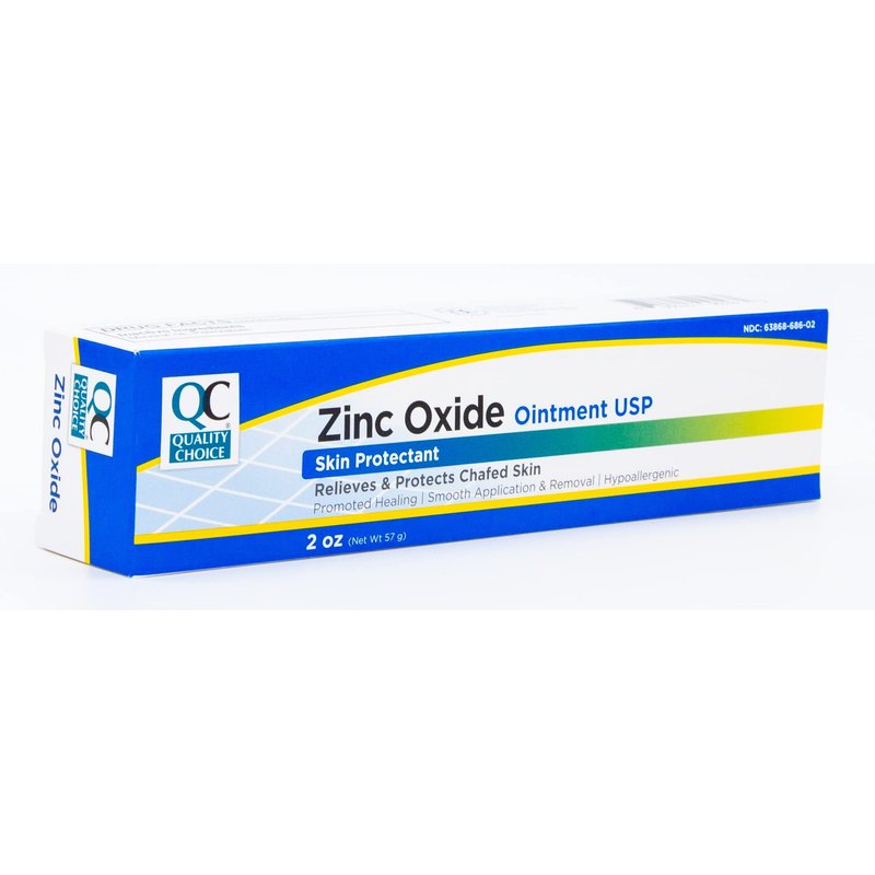 Quality Choice Zinc Oxide Ointment USP is a skin protectant that relieves and protects chafed skin, and dries the oozing and weeping of poison ivy, oak, and sumac. Quality Choice Zinc Oxide also protects and relieves chafed skin due to diaper rash and helps seal out wetness. Compare its active ingredient, Zinc Oxide (20%) to that of other leading brand ointments. There is smooth application and removal with Quality Choice Zinc Oxide, which is also hypoallergenic. From Quality Choice, The Brand You Trust. 100% Satisfaction Guaranteed. 2oz. (57g) per package.