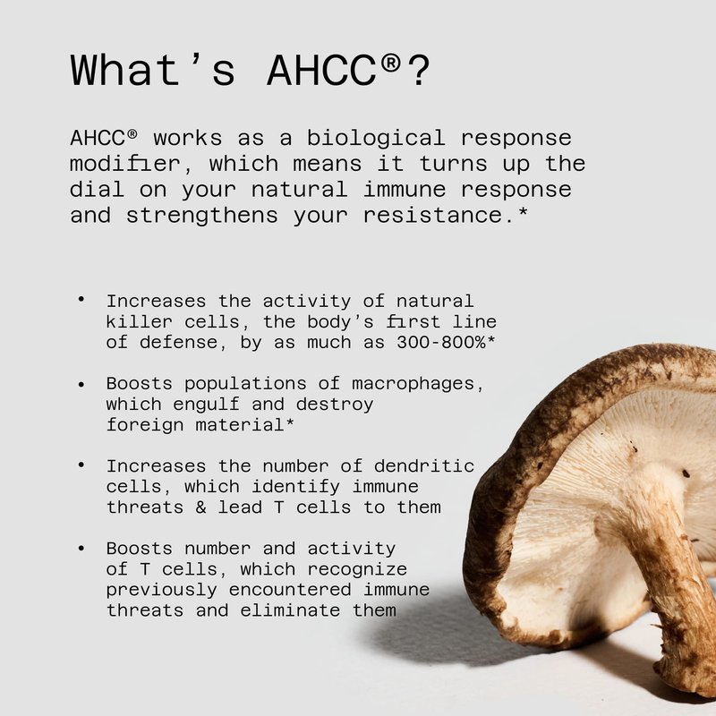 - CLINICALLY PROVEN IN OVER 30 HUMAN CLINICAL TRIALS: Our AHCC mushroom extract is comprised of several species of medicinal mushrooms including Shiitake and Mycelia. AHCC is unique in that while most mushrooms contain primarily Beta Glucans, AHCC is rich in Alpha Glucans, a type of polysaccharide with very potent immune enhancing effects.