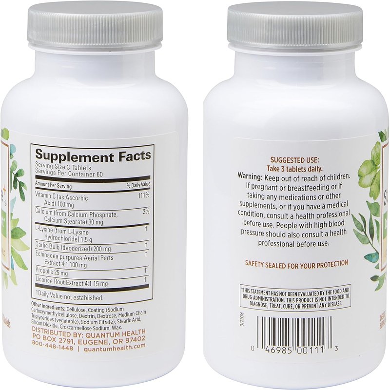Quantum Health SuperLysine+ Advanced Formula Immune Support Supplement Lysine 1500 mg, Vitamin C Echinacea Licorice Bee Propolis & Odorless Garlic - 180 Tablets (Pack of 2)
