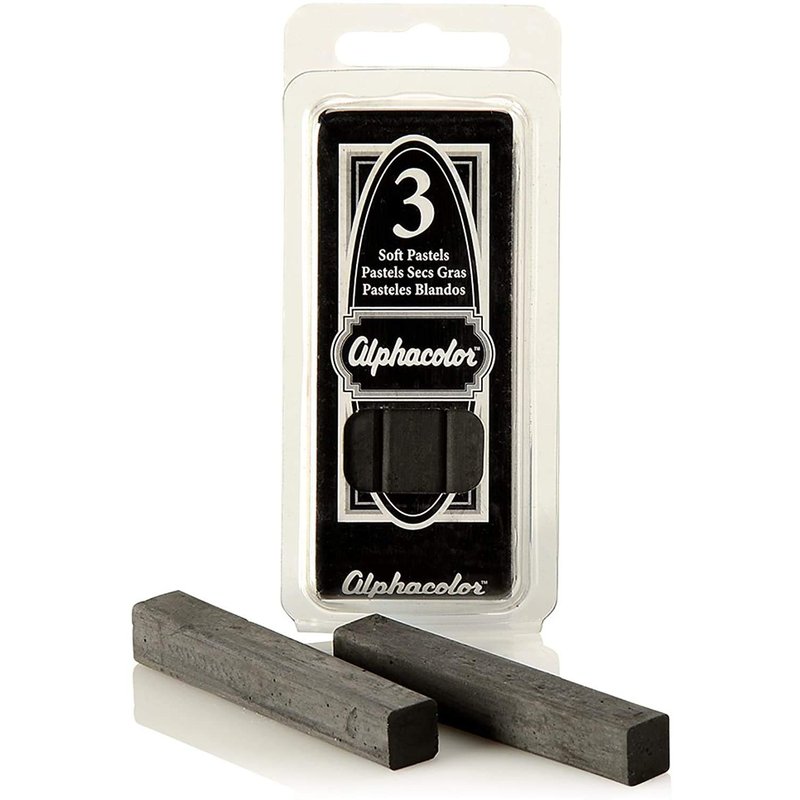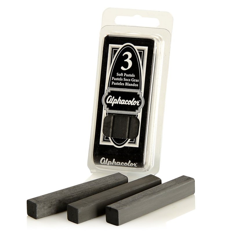 Quartet Derwent Alphacolor Soft Pastels, Charcoal, 3 Pastels per Pack (105C)