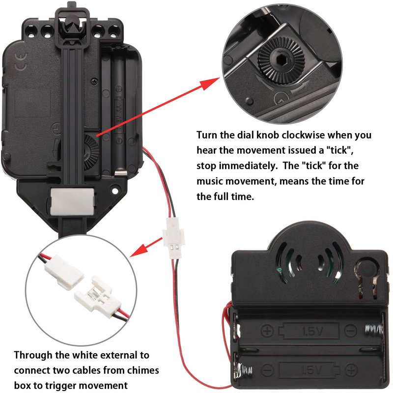 - What you get: in our pendulum clock movement set, you will receive 3 pairs of hands, pendulum, trigger clock movement, chime music box, mounting hardware and instructions, meet your different needs and replacement