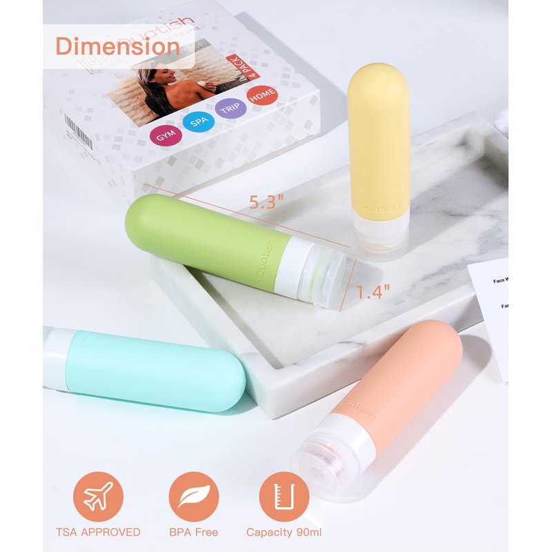 Quatish Travel Bottles for Toiletries, 4 Pack Leak Proof Travel Size Containers, BPA Free Silicone Travel Shampoo and Conditioner Bottles Tsa Approved, 3 oz Travel Size Bottles for Cosmetic, Lotion