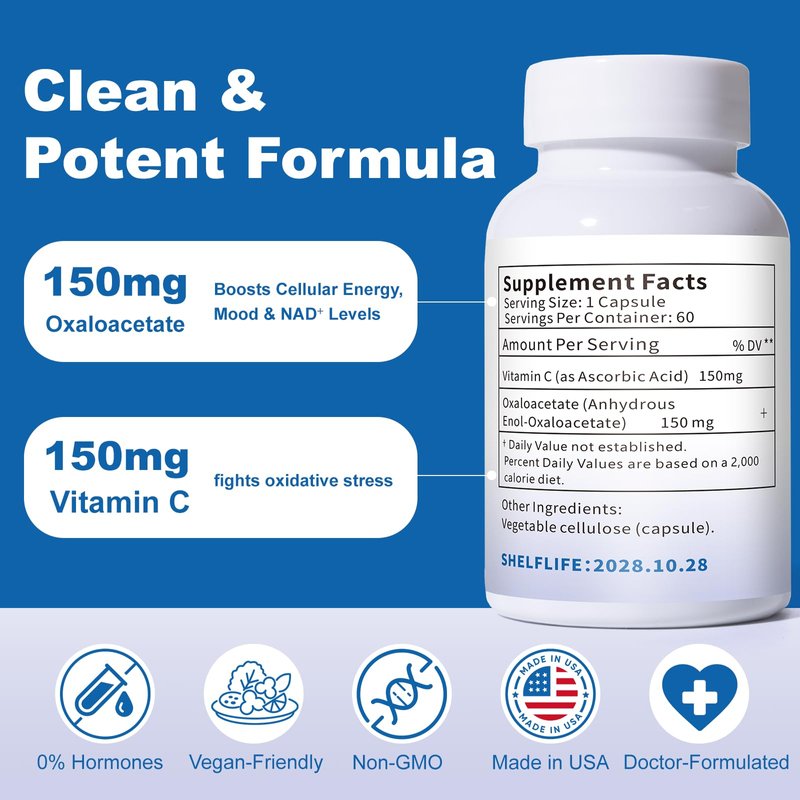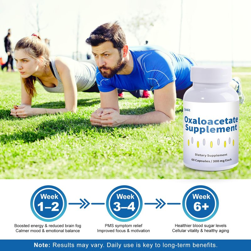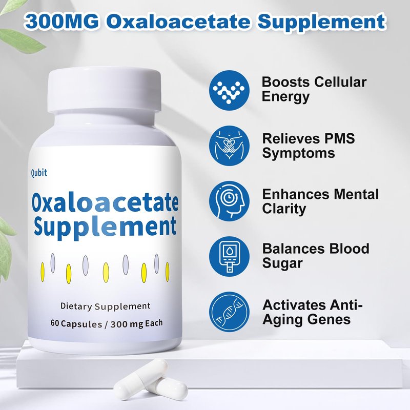QUBIT Oxaloacetate Supplement – Cellular Energy, Focus & Mood Support – with Vitamin C – for Fatigue, Brain Fog & PMS Relief – 60 Vegan Capsules