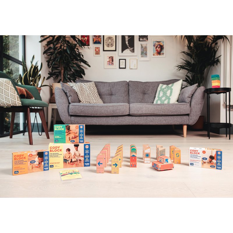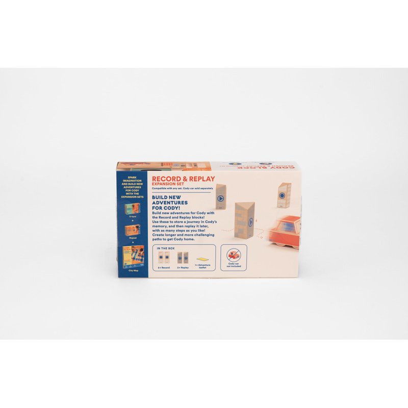 Build new adventures for Cody with the Record and Replay blocks! Use these to store a journey in Cody’s memory, and then replay it later, with as many steps as you like! Create longer and more challenging paths to get Cody home. Expansion set includes 2 Record, 2 Replay blocks and Adveture Leaflet. Not playable alone - needs the CODY BLOCK car. CODY BLOCK sold separately. The Record & Replay expansion set is part of CODY's world. Take a journey into coding with the smart wooden car. CODY BLOCK is on an adventure and needs your help. Can you get him home? Use blocks to change his direction to navigate the city. He drives like magic to introduce coding. Take back playtime with endless fun & hands-on play.