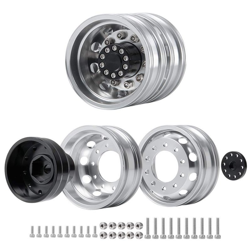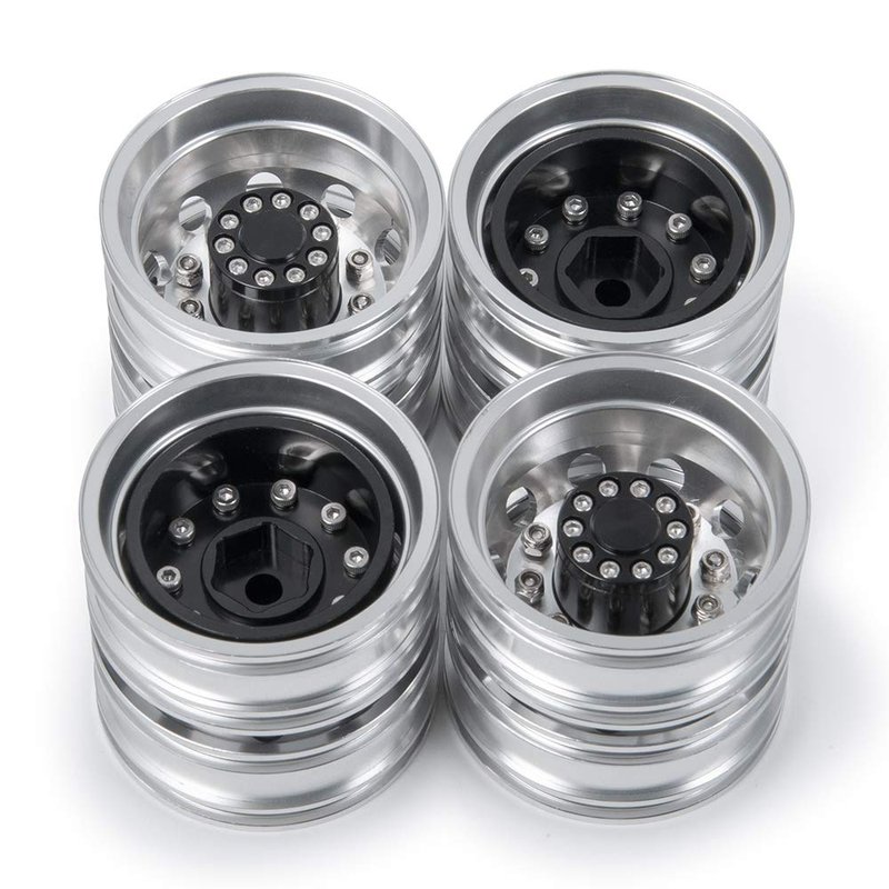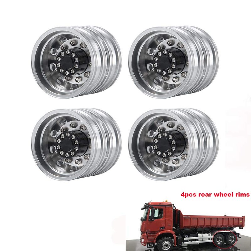 QUE-T 4pcs Aluminum Rear Wheel Hubs Rims for 1/14 Tamiya Tractor Climbing Trailer RC Car Upgrade Parts