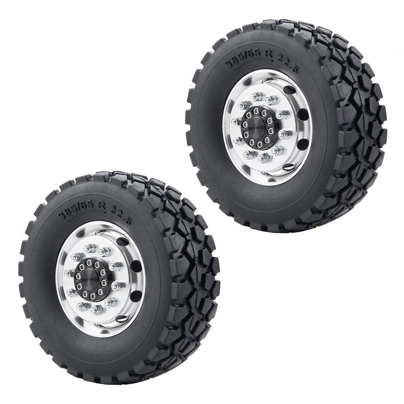 Que-T Metal Front Wheel Rims Hubs & Rubber Tires for 1/14 RC Tamiya Tractor Climbing Trailer Car, Pack of 2