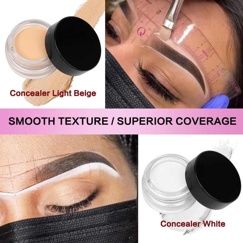 QUEEJOY Brow Mapping Kit includes 10m X Black&White Mapping String, 50pcs Eyebrow Ruler Stickers,White and Light Beige Brow Concealer & 2 Brow Brushes, Eyebrow Pencil Razor Sharpener and Instruction
