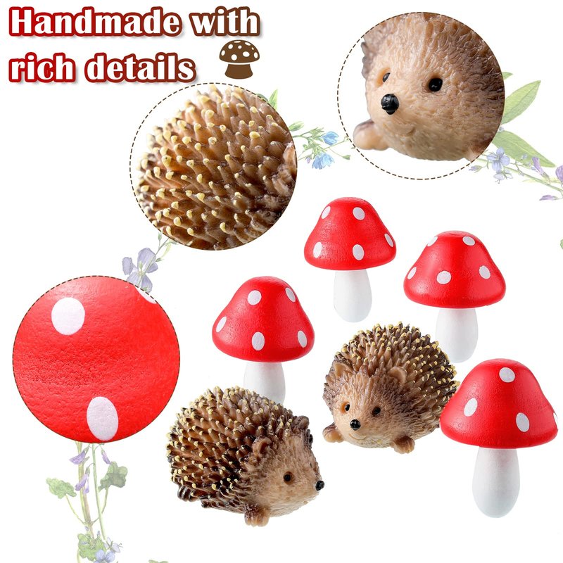 - Product Description: you will get a total of 6 pieces garden accessories, including 2 pieces cute hedgehog cubs and 4 pieces big red mushrooms, the shapes are vivid, the color is bright, and the volume is large, this set is an ideal microscopic decoration