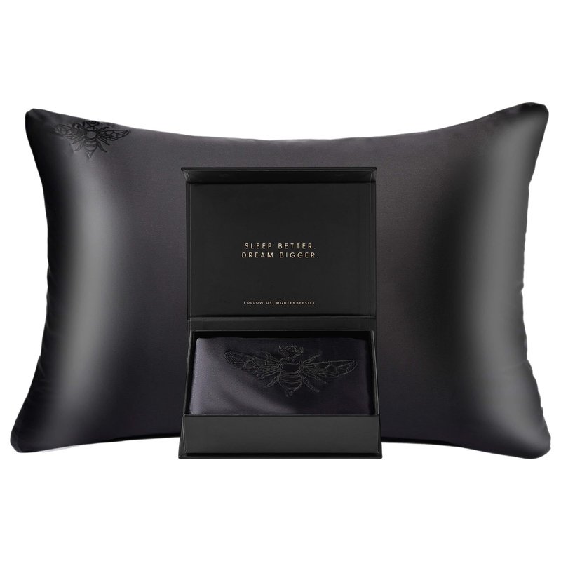 QUEEN BEE SILK - Silk Pillowcase for Hair and Skin - 22 Momme Mulberry Silk - Charmeuse Weave - Envelope Closure - King Size - Black