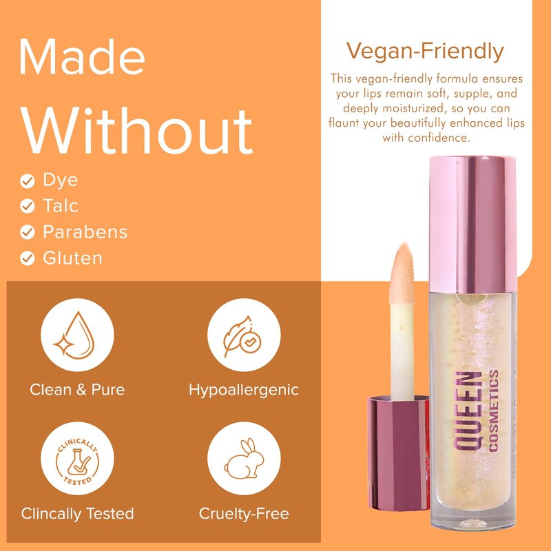 - ✨Experience the Dual Magic of Innovative Lip Plumper: Queen Cosmetics lip gloss plumper is of vegan-friendly formula ensures soft, supple, and beautifully enhanced lips, empowering you to flaunt your confidence with deep, long-lasting moisture all day.