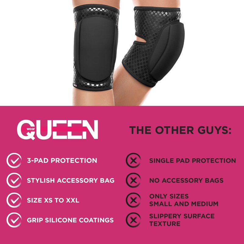 Queen Wear – Sleek Black Grip – Pole Dance Knee Pads – Perfect Woman Protection for Pylon Ballet Modern Dance (M)