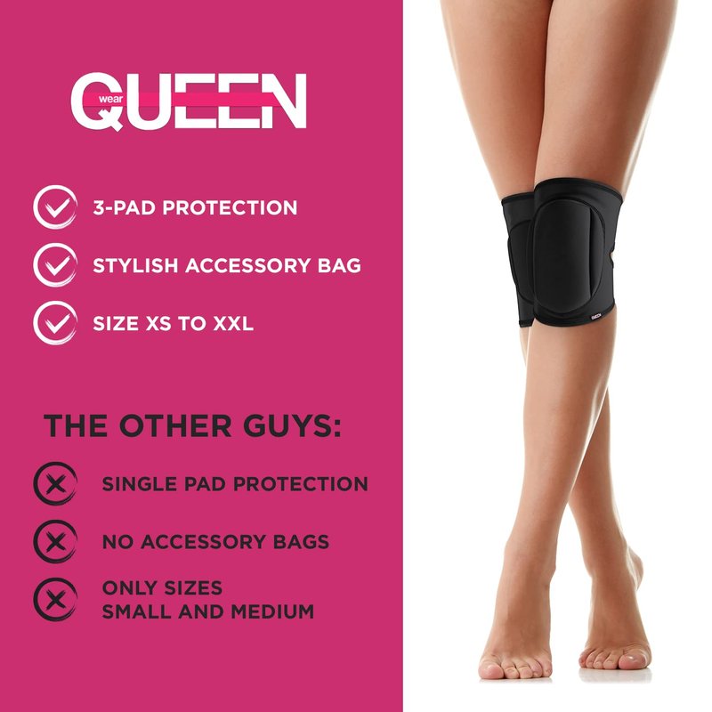 Queen Wear – Sleek Black – Pole Dance Knee Pads Perfect Woman Protection for Ballet Modern Dance and Indoor Sports (XXL)