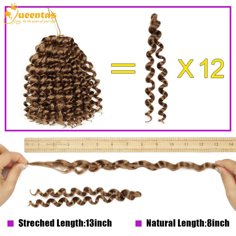 QUEENTAS 6Packs Jamaican Bounce Crochet Hair Extensions 8 inch Ringlet Wand Curl Gogo Crochet Hair Curly Crochet Braids Water Wave Crochet Braiding Hair 72 Roots (8inch,#27)