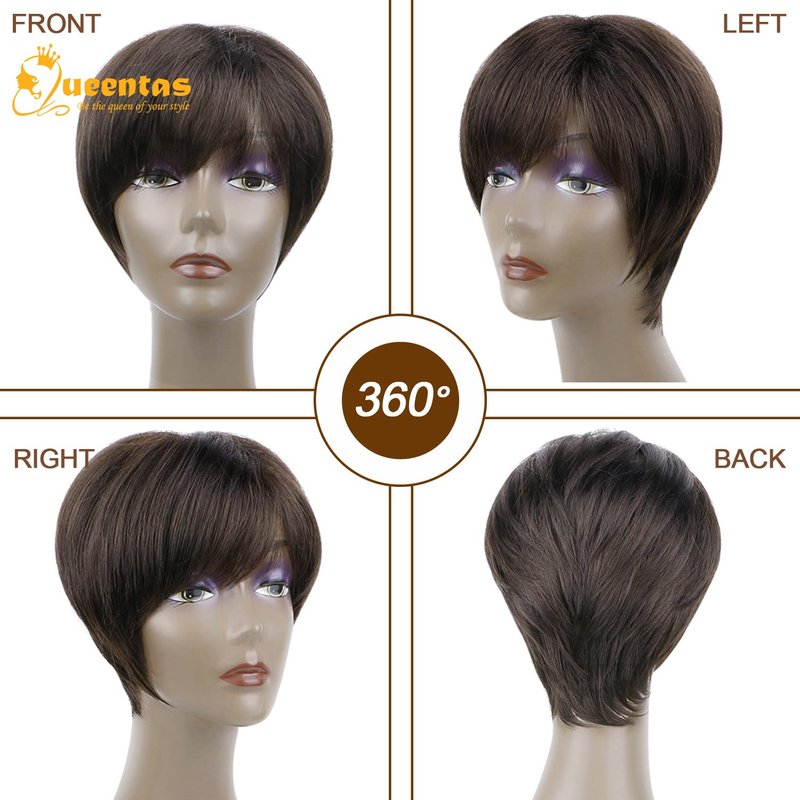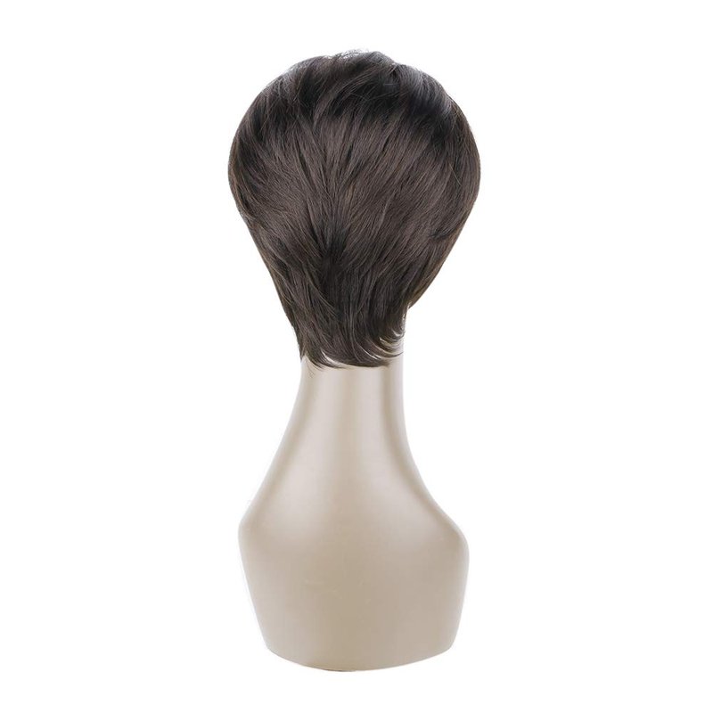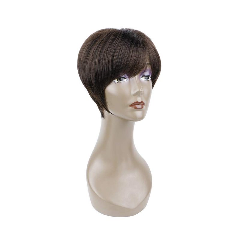- ❤Color: Look like dark brown, but not black, very natural.Included:1pc short brown wig+1pc wig cap. Please Note: This wig can't be colored/dyed.There are some color differences because of light and monitor.