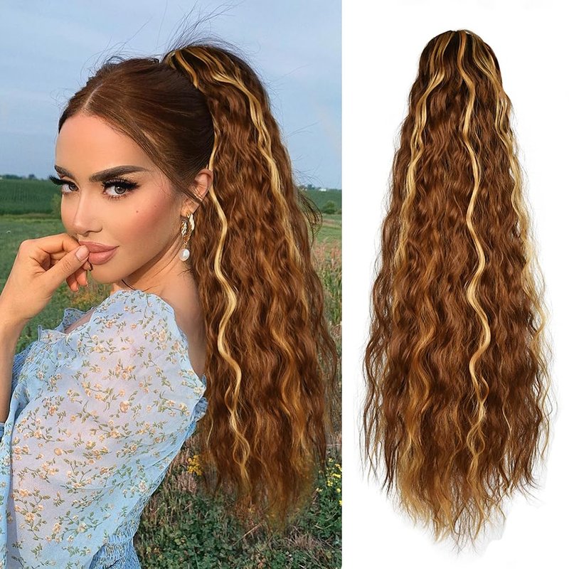 - 🍒 [SOFT COMFORTABLE HEAT RESISTANT SYNTHETIC] - Crafted from high-quality heat-resistant synthetic fiber, 22 inch long curly wavy ponytail extension offers a soft and comfortable feel just like your own hair. It beautifully blends with your natural hair, providing a seamless and stunning result.