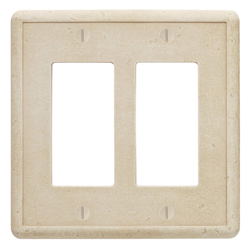 Questech Decor Double Rocker Light Switch Cover, 2-Gang Electrical Wall Plate, Double Switch Decorator Standard Size GFCI Receptacle Cover, Decorative Wall Plate Tumbled Texture, Travertine