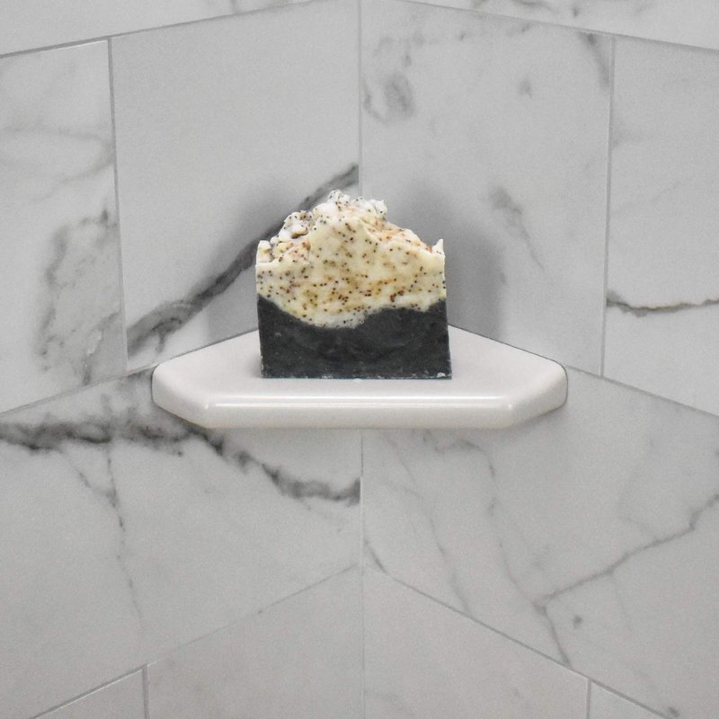 Questech Decor Shower Soap Dish, Retrofit Corner Shower Shelf for Tiled Shower Walls, Bathroom Storage, 5 Inch Geo Flatback Shower Caddy, Cool Gray Polished