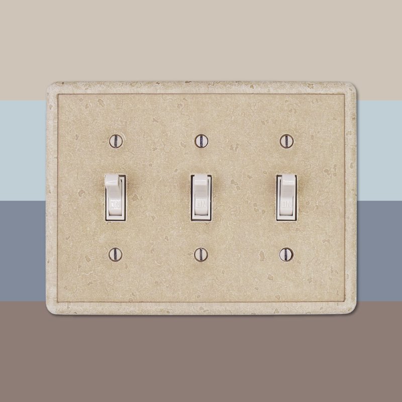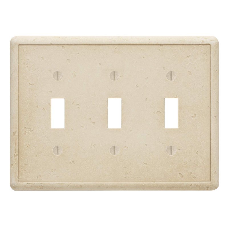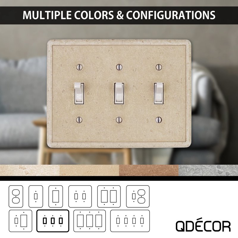Questech Decor Triple Toggle Light Switch Cover, 3-Gang Electrical Wall Plate, Triple Switch Standard Size Receptacle Cover, Decorative Tumbled Texture, Travertine