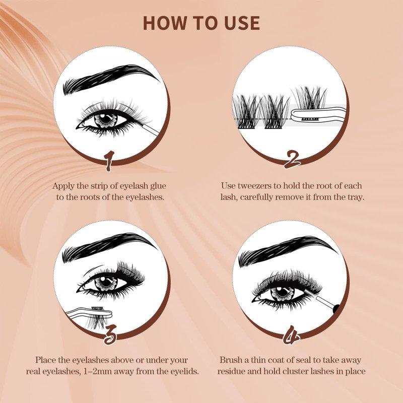 THIRD STEP: Put the cluster eyelashes under your own lashes and brush a thin layer of cluster eyelashes seal to make them long-lasting.